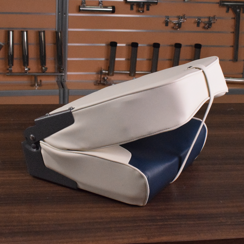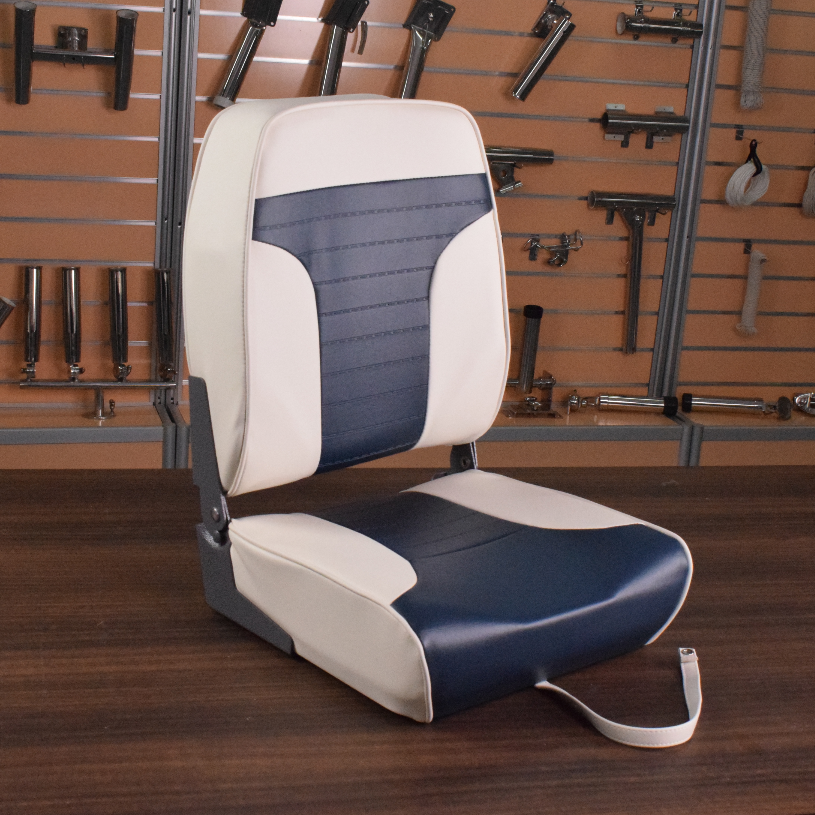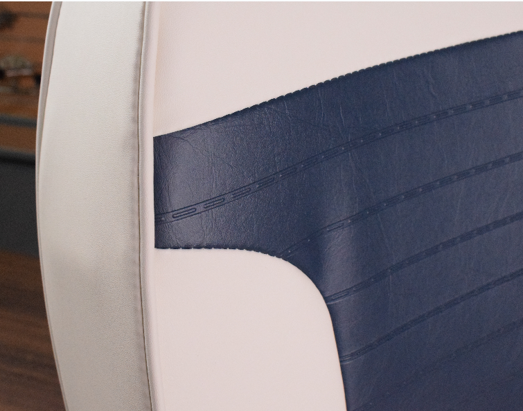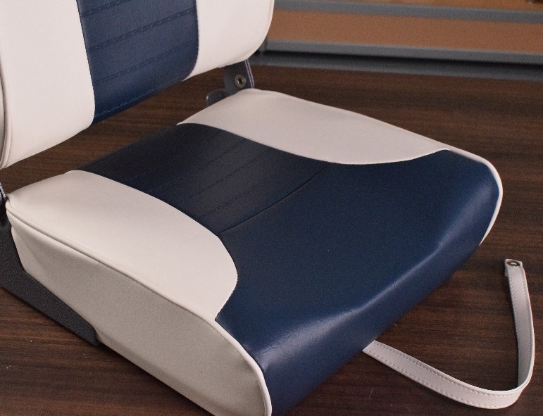 Удобные, просторные и мягкие складные сиденья, полностью обитые виниловой обивкой морского класса. Алюминиевые петли без защемления и виниловый ремешок с хромированной латунной пресс-шпилькой.